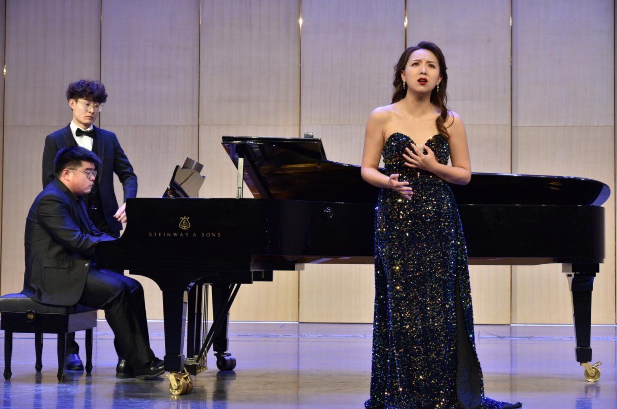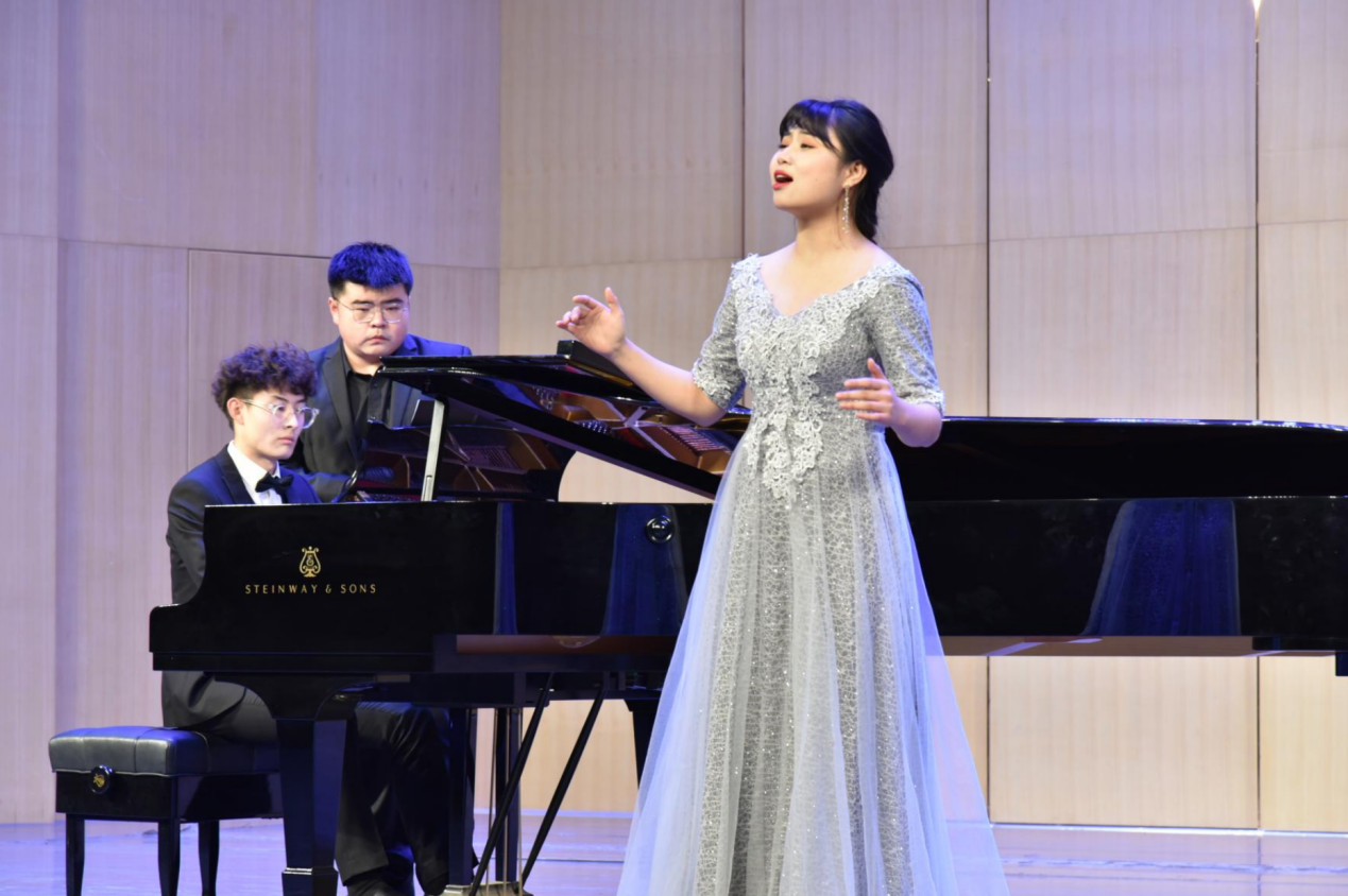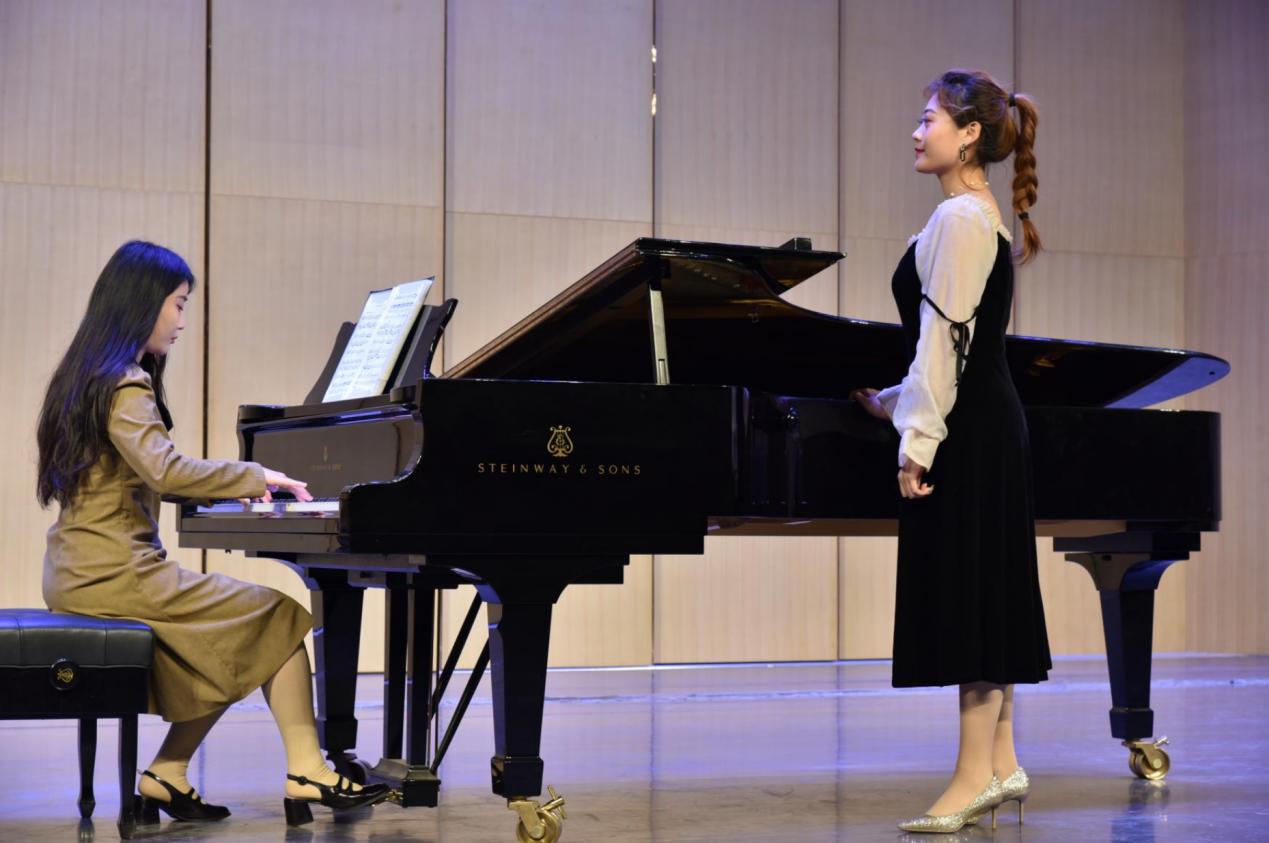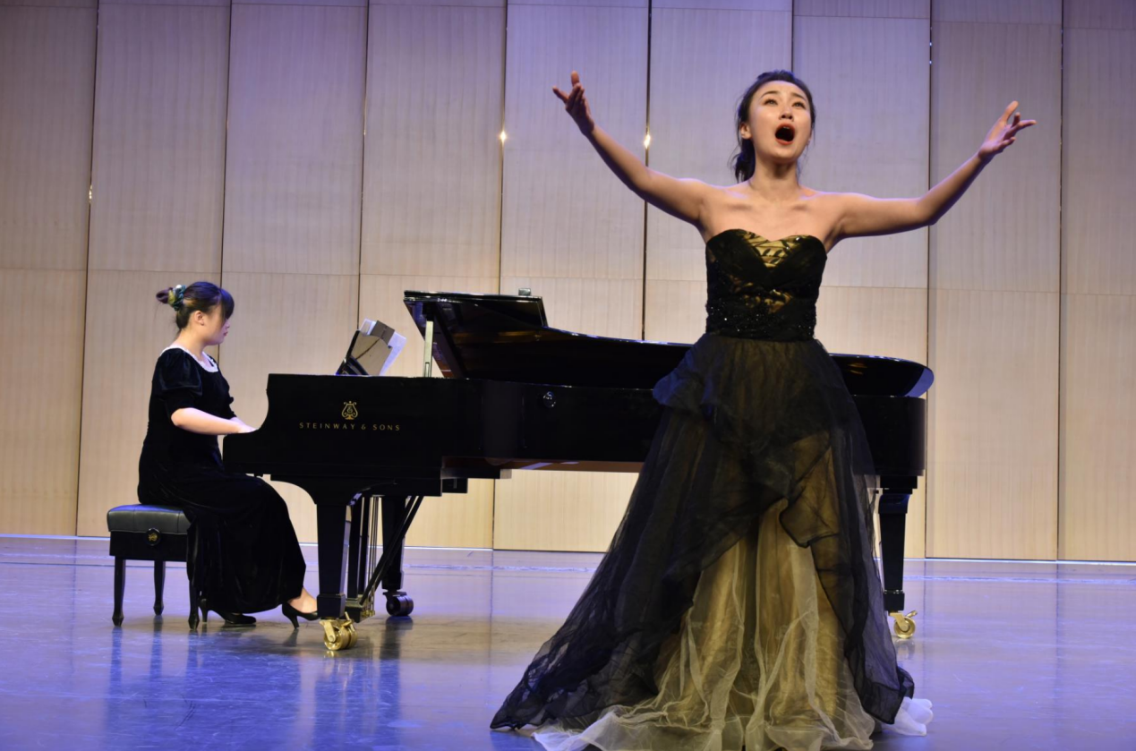 《漫步街上》,选自普契尼最受人喜爱的歌剧《艺术家的生涯》。普契尼的音乐基调大多是这种“泪中带笑”的。研究生李丽娜明亮的、有张力的表演突出了作品中主人公缪塞塔风骚、妩媚的个性。