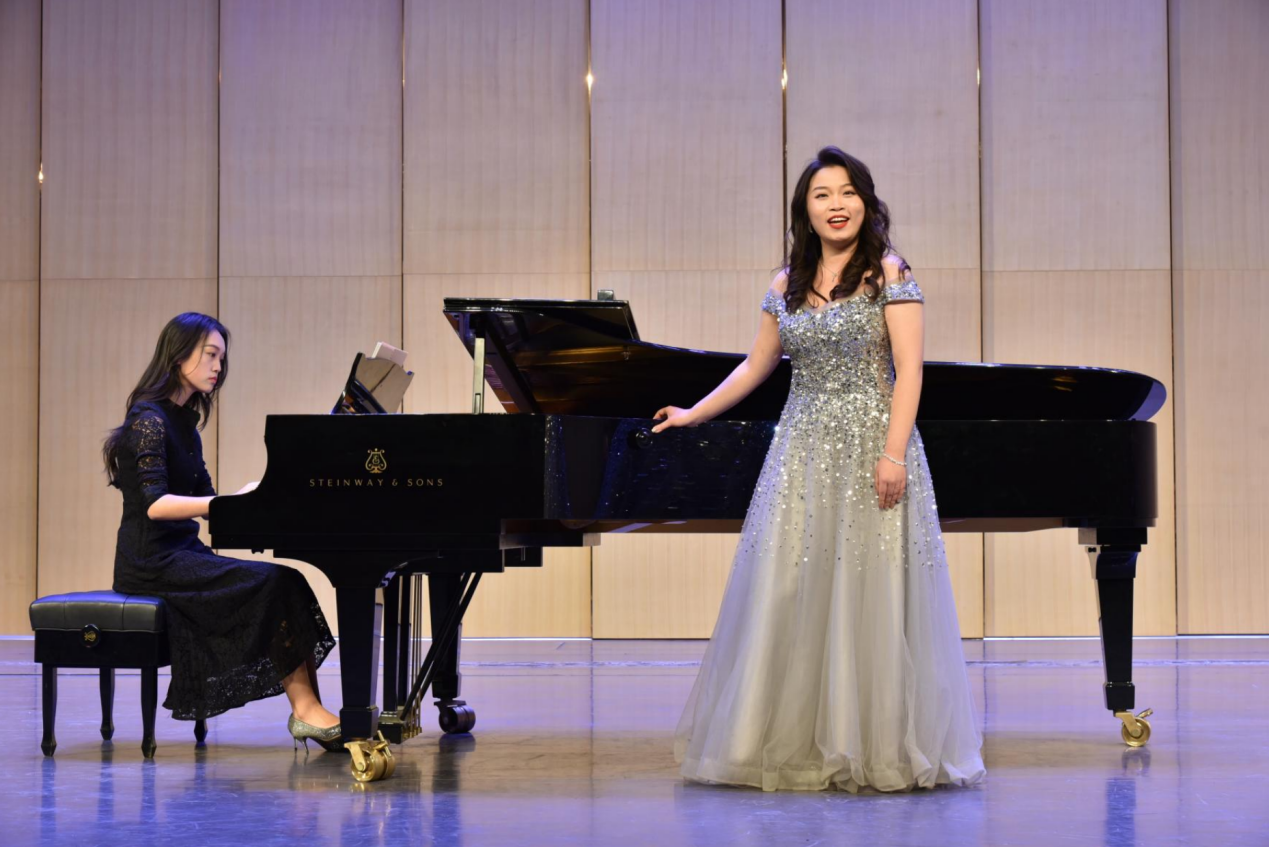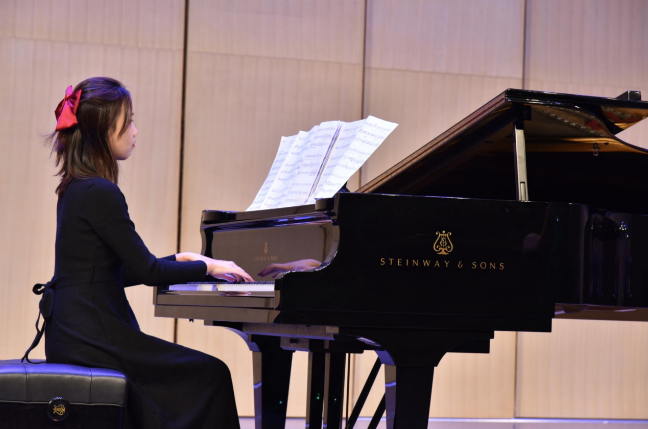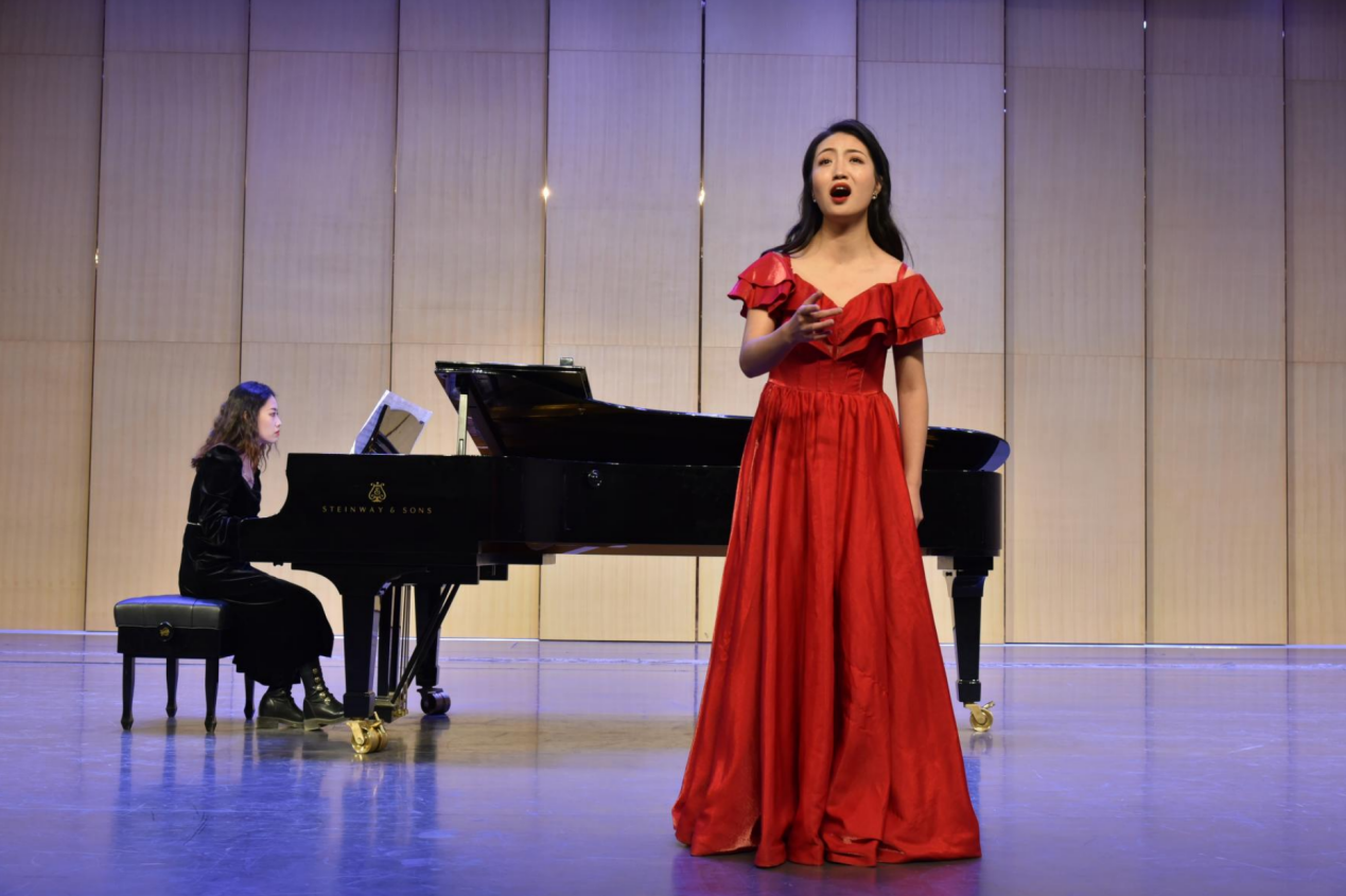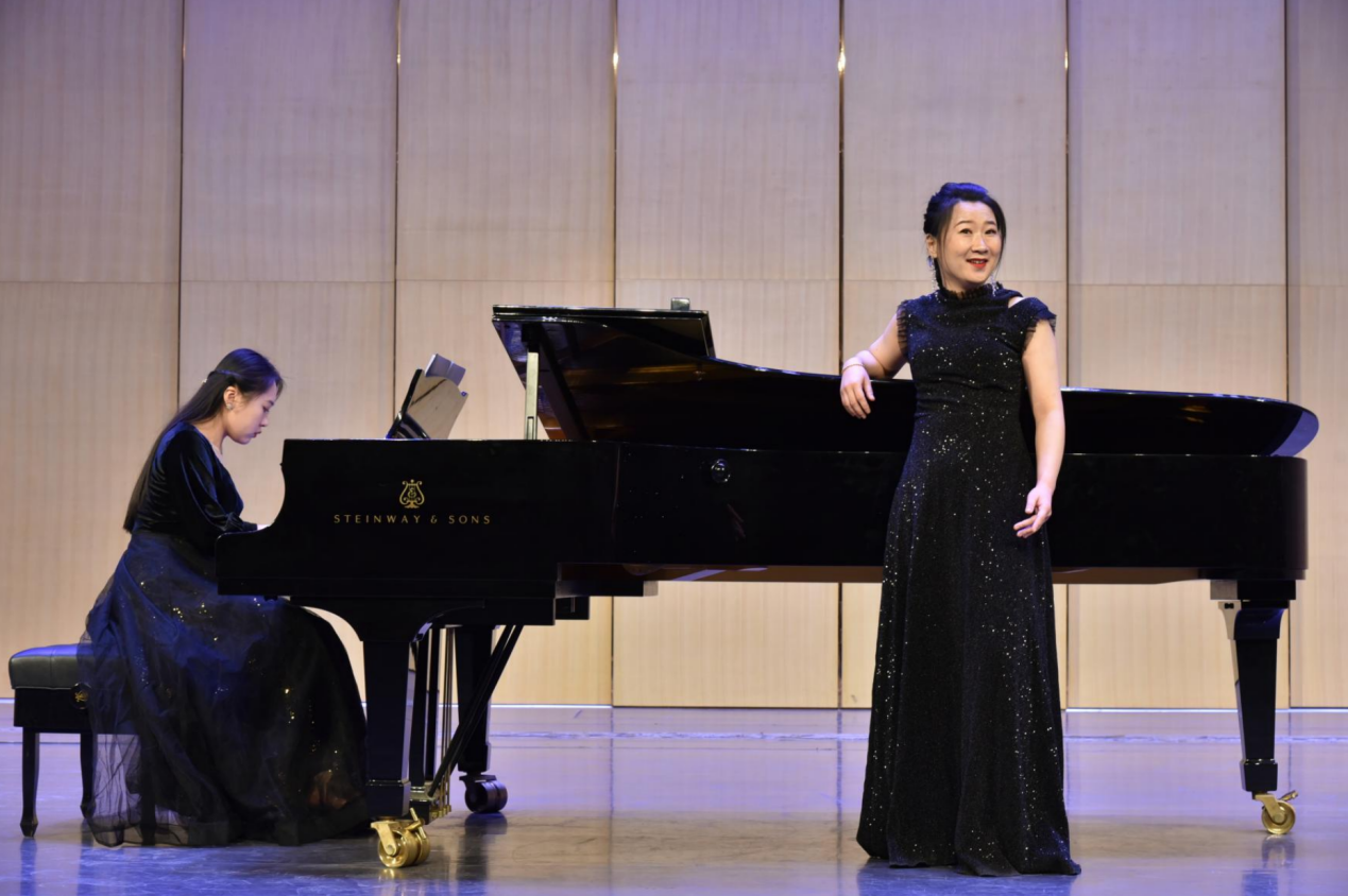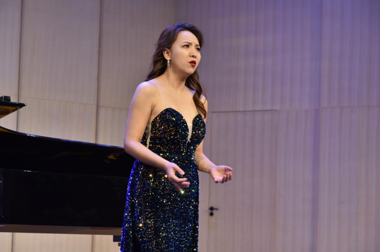 《漫步街上》,选自普契尼最受人喜爱的歌剧《艺术家的生涯》。普契尼的音乐基调大多是这种“泪中带笑”的。研究生李丽娜明亮的、有张力的表演突出了作品中主人公缪塞塔风骚、妩媚的个性。