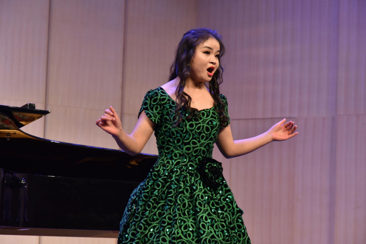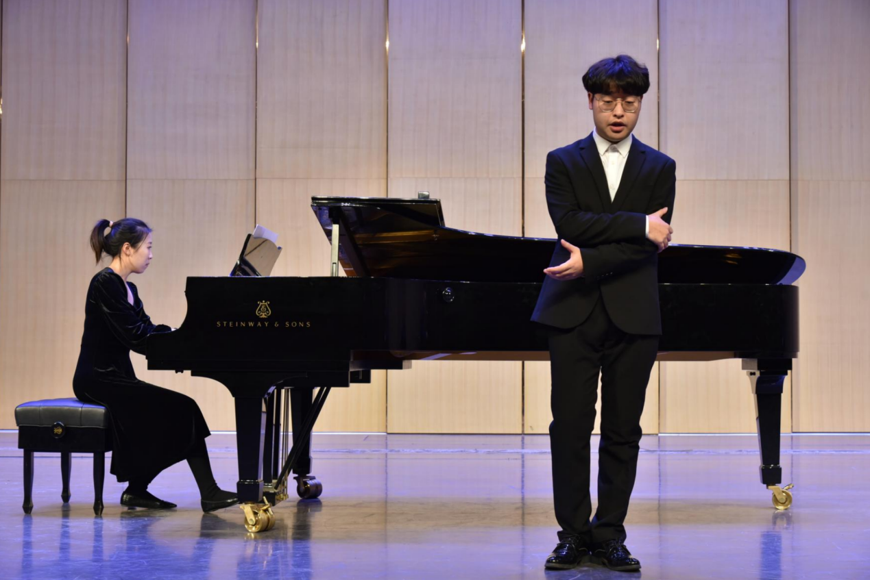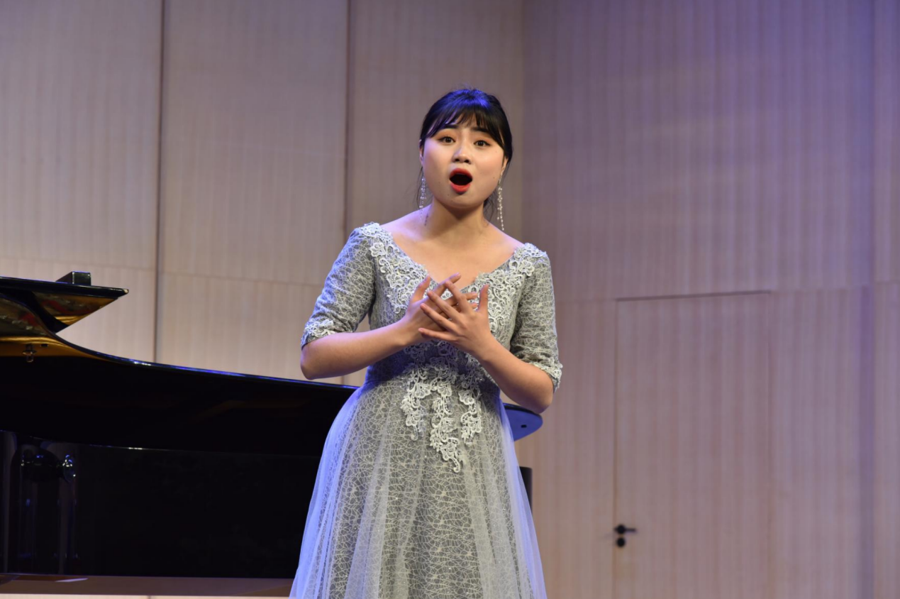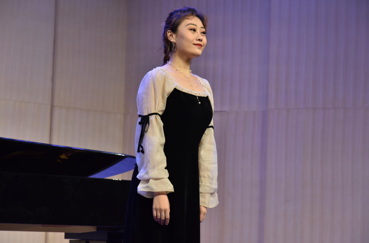 《青青牧草》,这首作品选自1735年亨德尔创作的三幕歌剧《阿尔契娜》,讲述了一个魔法王国的故事。作品虽短小,但研究生孙苡铭的表演表达出主人公对看到用魔法制造出的美景之后的深刻感慨。