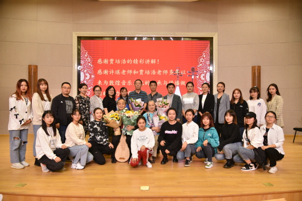 2020年9月9日下午,在新生即将开学之际,公司特邀甘肃省歌舞团首席琵琶、中国音乐家协会会员、中国民族管弦乐学会三、四、五届常务理事、甘肃省音协琵琶专业委员会名誉会长贾培浩老师以及著名舞蹈家许琪老师,为公司师生展开了一场别开生面的学术讲座。讲座伊始,由主持人陈建红副经理对贾培浩老师的艺术生涯做了详细介绍。接着,贾培浩老师为大家讲述有关敦煌古乐的沿革发展、唐五代敦煌乐谱由来等问题,并以敦煌古谱为基础创作的《撒金沙》《边塞》《反弹琵琶》三首作品为例,详细解说并为公司四位琵琶专业员工亲身示范,员工们受益匪浅。台下的许琪老师以切身经历,为大家讲述关于《敦煌古乐》日本行的体会,赢得了大家的阵阵掌声。讲座结束,甘肃省音协琵琶专业委员会会长张岚对此次讲座进行了总结。他强调:希望新一代琵琶人能够延续前辈无私无畏、改革创新、发扬传承的精神,继续将敦煌琵琶曲发扬光大。