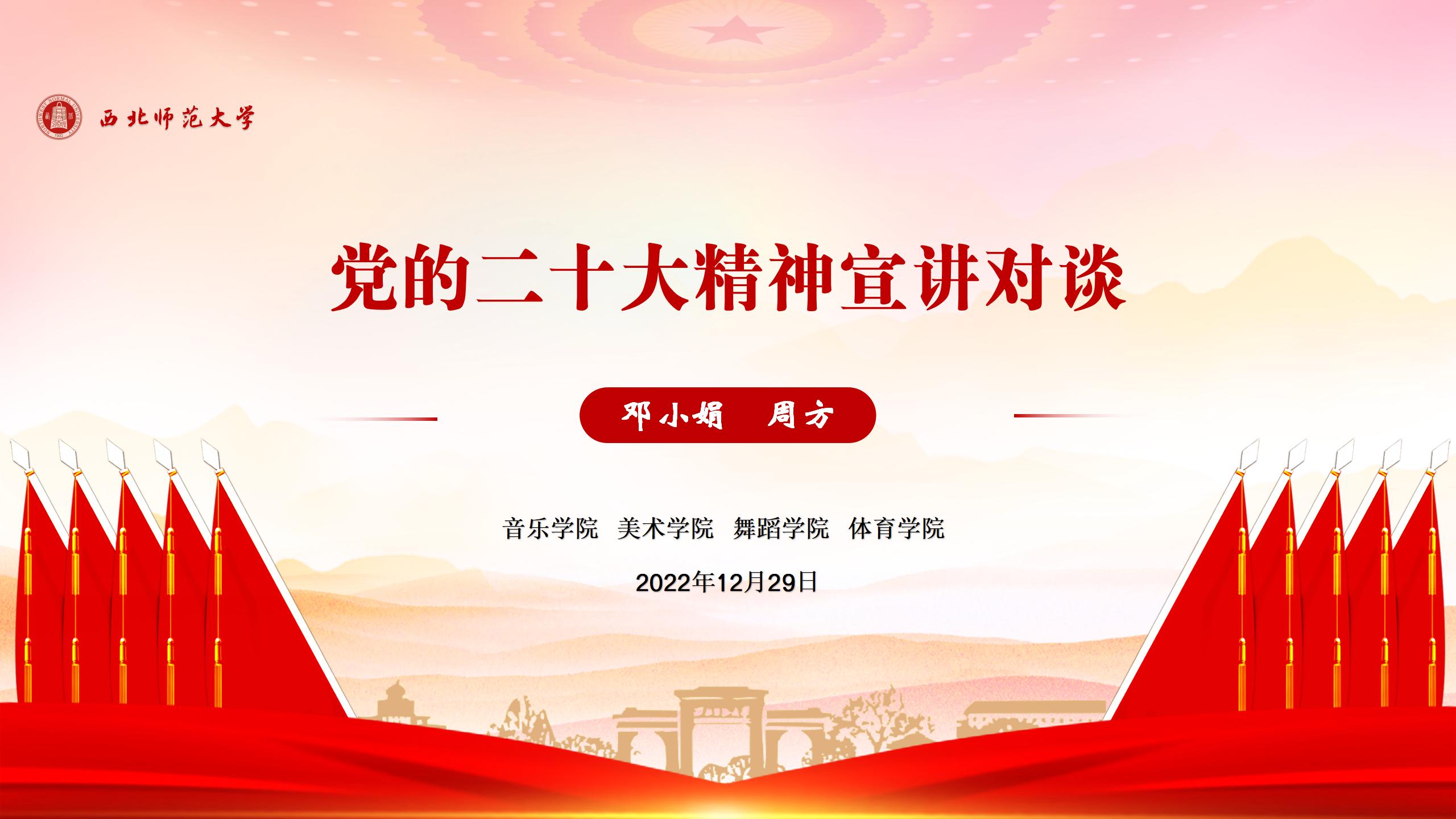 按照《中共英国正版365官方网站委员会关于深入学习宣传贯彻党的二十大精神的实施方案》安排,12月29日,英国正版365官方网站党委常委、宣传部部长、副董事长邓小娟教授,党的二十大精神宣讲团专家、马克思主义学院周方副教授为音乐、美术、体育、舞蹈学院教工260余人开展党的二十大精神宣讲对谈。邓小娟副董事长主持了宣讲对谈报告会。 报告会上,邓小娟围绕党的二十大报告主题“六问”、“三个务必”、“六个必须坚持”、“两个确立”的决定性意义、党的十八大以来新时代十年的伟大变革、党的十九大以来的重大成就、党的二十大作出的重大决策部署和加快建设教育强国、科技强国、人才强国,习近平总书记在参加党的二十大广西代表团讨论时提出的“五个牢牢把握”等方面进行全面系统的深入解读。邓小娟指出,要把学习贯彻党的二十大精神作为今后工作的重中之重,深刻理解、准确把握精神实质和实践要求,切实把广大师生的思想和行动统一到党中央精神上来,在学思践悟中不断坚定信念、启迪智慧、汲取力量,牢记初心使命,勇担时代责任,激励师生以更加昂扬的姿态奋进新征程、建功新时代。要坚持立德树人的根本任务,坚持不懈用习近平新时代中国特色社会主义思想铸魂育人,为党育人,为国育才