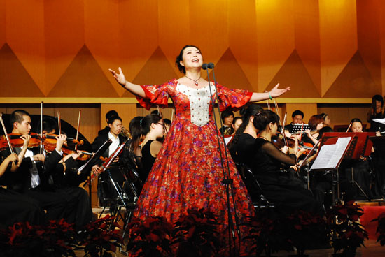 音乐会由学院管弦乐团和敦煌舞乐团伴奏,学院师生表演的合唱《红旗飘飘》、《我和我的祖国》,管弦乐演奏《红色娘子军》序曲,独唱《英雄赞歌》、《唱支山歌给党听》、《打起手鼓唱起歌》、《我爱你,中国》、《多彩的哈达》、《把一切献给党》、《万岁!中国》,钢琴与弦乐演奏《八月桂花遍地开》,古筝独奏《浏阳河》,琵琶独奏《彝族舞曲》,钢琴协奏曲《黄河(第四乐章:保卫黄河)》,四重唱《节日欢歌》等脍炙人口的红色经典曲目,一遍遍把音乐会推上高潮。
