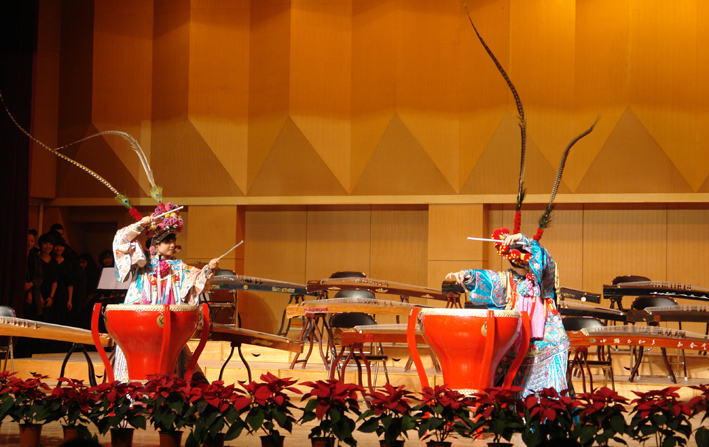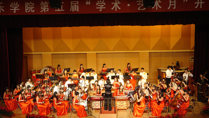 在今年学术艺术月开幕式上,两个乐团为来宾演奏了由山西民歌改变的欢快、喜悦、热情洋溢的民乐合奏《喜洋洋》,唢呐独奏《正月十五闹雪灯》,二胡名曲《战马奔腾》,具有浓厚的白族风韵、优美抒情的古筝四重奏《蝴蝶泉边》,打击乐《刀马旦》,热闹欢腾、喜气洋洋的《春节序曲》,铿锵有力的革命乐曲《红色娘子军·序曲》,世界著名芭蕾舞剧《天鹅湖》,激昂的《拉德斯基进行曲》等。两个乐团以饱满的热情、求实奋进的态度向学校领导和各位来宾汇报了一年来的成果,演员们精湛的演艺技能、热情洋溢的表演赢得了观众的赞扬。