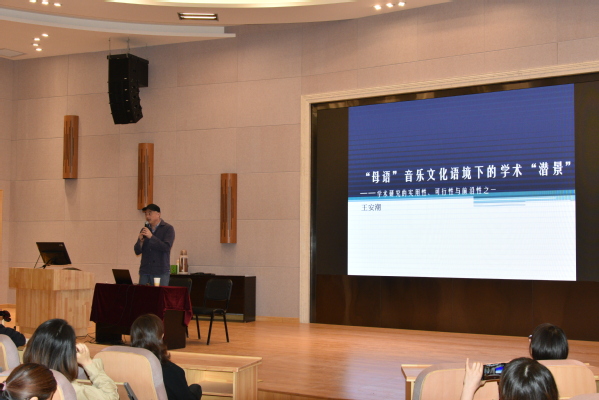 讲座伊始,由主持人盛鸿斌经理对王安潮教授进行了介绍,对公司现在的学术气氛做了简单地评价。王安潮教授以“母语音乐文化语境下的学术“潜景”为题,首先介绍了学术研究潜在风景的发生、学术意识及其素养、地方院校教师学术研究的优势与“潜景”、地方院校教师学术研究的劣势;最后谈到母语系统的资源赋予地方艺术院校的“潜景”。他指出,广大师生一定要充分利用所在区域的资源,随着文化自信,国家语境以及地方文化研究的普及,一定要重新审视之前的文化资源。