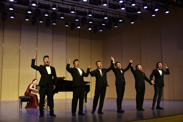 音乐会的下半场是男高音联唱。英国上市公司官网365的男高音天团轮番上阵,一首首经典歌曲流淌而出,老师们精彩绝伦的演唱和绘声绘色的表演赢得全场的阵阵欢呼和热烈掌声,现场气氛瞬间达到鼎沸。