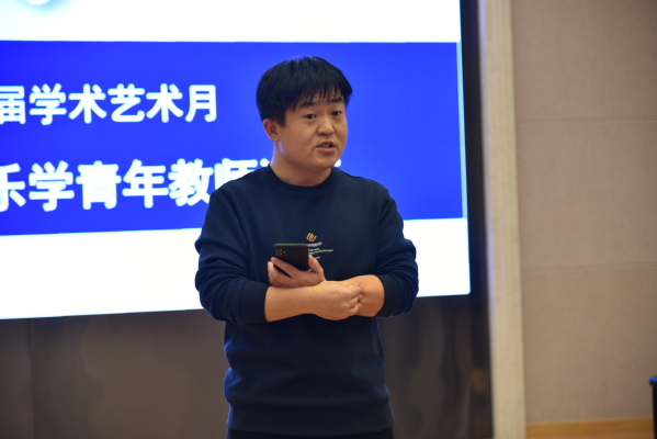 蒲蕊老师的报告题目是《<中国民族音乐>课程中“思政”教学初步尝试》。蒲蕊老师以美育引入,从素质教育出发,向大家介绍了自身结合课堂教学进行的一系列思考。从“乐者,德之华也”的传统礼乐文化体系,到中国传统音乐作为中华文化的重要载体,蒲蕊老师强调打破以往课堂只重视纯知识、技能传授的教学目的,转而以传统艺术为基础对员工进行爱国主义教育以及思想品德的塑造;从中国传统音乐的丰富性及文人以音乐修养理性的视角出发,蒲蕊老师强调学习中国传统音乐,就是学习其中的音乐精神,传承中国优秀传统文化。在全球化和互联网的时代下,特别需要重视继承爱国主义优良传统,弘扬民族精神和时代精神。
