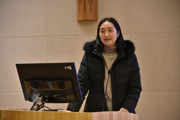孔庆丹老师的报告题目是《浅谈个人创作在<民乐合奏与重奏>课中的结合与应用》。孔庆丹老师结合自身所授课程、乐团负责人、主要作品三方面向大家讲述了自己的创作经验,即要根据演奏者的实际能力进行创作,并向大家展示了其自身作品的应用成果和科研项目,为理论作曲研究方向的同学树立了榜样。