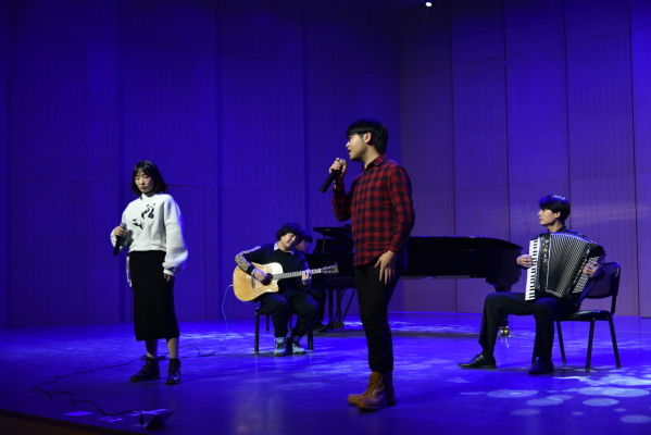 由杨刚、杨森等五位同学带来的《贝加尔湖畔》是由李健作词、作曲并演唱的一首歌曲,具有俄罗斯风格的民谣曲风。旋律悠扬,歌声空灵,沁人心脾,使得观众意犹未尽。音乐会也随着歌声的消散落下帷幕。