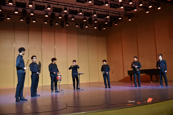 由李明涛、魏有有等七位同学带来的器乐合奏《打枣》是河北民间乐曲,由河北梆子戏衍变而来。曲调高亢,热情豪爽,展现了农民丰收时节的喜悦之情。