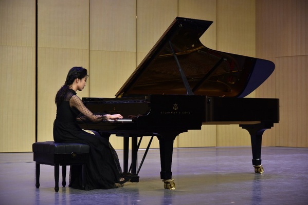 田琛 钢琴教学与演奏 展示作品 德彪西《练习曲No.1-五指练根据车尔尼先生创作风格而作》、贝多芬《降A大调第三十一钢琴奏鸣曲》、肖邦《24首前奏曲Op.28》1-10首、普罗科菲耶夫《第三钢琴奏鸣曲》。田琛同学的演奏完美呈现了古典主义、浪漫主义等时期的音乐风格,使观众沉醉其中。