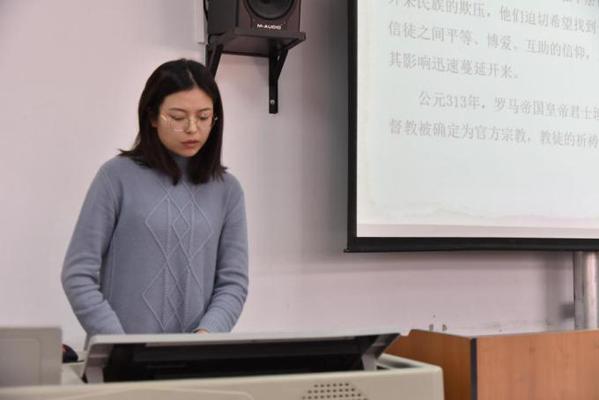 梁丽洁的报告题目为《中世纪教会礼仪音乐的发展研究》。她以中世纪的格里高利圣咏和复调形式的经文歌入手,分析探究了西方教会礼仪音乐的发展。