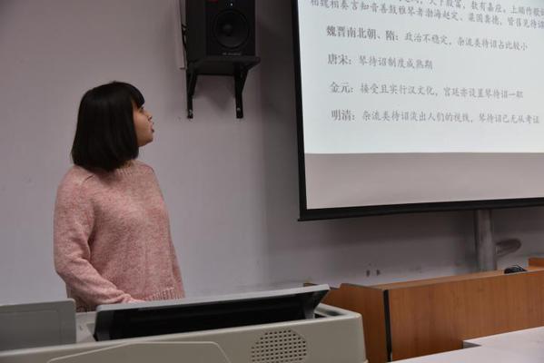 杨路英的报告题目为《唐、宋琴待诏制度探析》,她从琴待诏的溯源追寻,以琴待诏的流变入手,梳理了琴待诏的发展、选拔、官职设置等状况。
