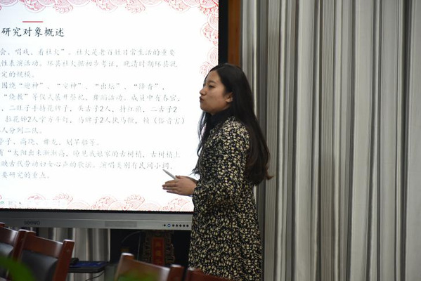 谢粉兰的论文题目是《环县社火调查研究》,她将单独对环县社火进行系统调查研究,挖掘其中的各类歌唱曲调特征,探究其社会功能。