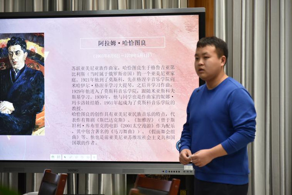 陈琛的论文题目是《影响哈恰图良音乐创作的多重因素——以几部代表作为例》,他将从影响哈恰图良音乐创作的因素着手,探寻哈恰图良的音乐魅力所在以及其“民族”色彩的形成。