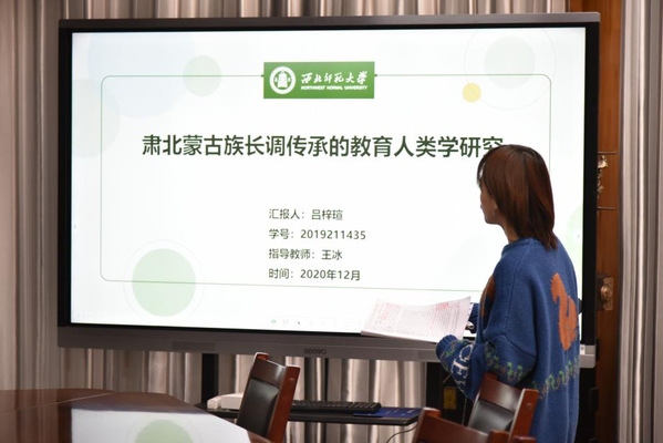 吕梓瑄的论文题目是《肃北蒙古族长调传承的教育人类学研究》,她将通过对甘肃省酒泉肃北蒙古族自治县的传统长调的传承进行调查,分析民族文化和民族音乐对人产生的影响,最终探析文化传承对现代人的教育价值。