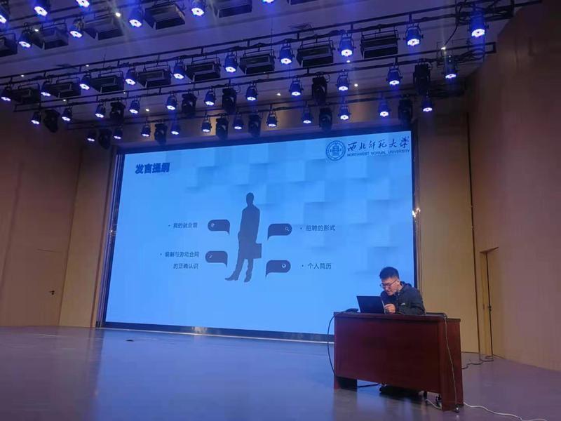 首先,学院邀请学校人才招聘处雷春芳老师作了专题报告。雷老师从就业形势、就业政策、岗位选择等方面作了体系化的详细讲解。她的报告结合了国家、甘肃省关于就业的最新统计数据,近期学校专场招聘会的具体情况和往届毕业生的具体事例,以生动幽默的语言风格,直击学院员工择业就业的堵点和痛点。结束讲解后,雷老师现场回答了员工们提出的问题,她鼓励毕业生积极行动、抓好机遇,树立“先就业、后择业”的就业观,以积极的心态迎接未来的挑战。会议第二阶段,学院优秀毕业生代表刘亚博分享了自己成功签约全国知名中学的故事。