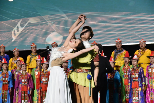 乐章《序曲》讲述的是在这片美丽的土地上,生活着甘肃独有的少数民族——裕固族。悠久的民族传统文化长河中,流传着一个凄美的爱情故事,反映着勤劳的裕固族人民对美好生活的热情向往,赞美着浪漫的裕固族人民对自由和爱情的美好祝愿!您听,他用天籁般的歌喉,赞美着大地;您听,他用优美的歌声,感谢着苍天;您听,他用一颗纯洁的心,感恩万物苍生,也感动了那只翩翩起舞的美丽天鹅。从此,他们心心相印,在天鹅湖畔相依相伴!从此,他们相濡以沫,在天鹅湖畔双宿双飞。《尖嘴子鸟》乐章中,杨鹏宏老师邀请全场观众一同学习裕固族语言“jaolakogash”(尖嘴子鸟),杨鹏宏老师生动的表演将“尖嘴子鸟”的形象展现的淋漓尽致,让现场观众感受到裕固族的文化,引起全场沸腾,掌声四起,呼声不断,经久不息。