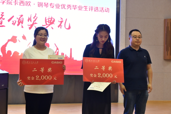 出席本次颁奖典礼的有卡西欧(中国)贸易有限公司北方大区负责人郑绵金;卡西欧(中国)贸易有限公司西北区负责人李健;兰州索万尼琴行有限公司总经理于洁;兰州多琳乐器有限公司总经理夏天;兰州巴音乐器艺术学校教师李承杰;兰州中山星海钢琴总经理李京林以及公司王岐堃副书记;钢琴系主任赵鹏副教授受邀出席本次颁奖活动。此次典礼由公司副经理孙晓杨主持,副经理晏晓东讲解评选细则。