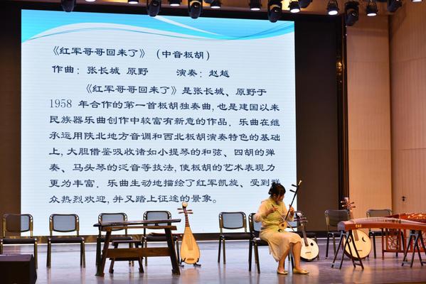 本场通识课讲解、演奏的乐器几乎涵盖了所有中国民族乐器,从距今约7000多年前的骨笛,到南北朝传入中国的琵琶,再到近现代民族乐器的定型,都充分体现着我国传统民族乐器的魅力。孔庆丹老师在分门别类的展示过程中带领全校师生畅游千年历史,员工在感叹传统乐器强大生命力的同时,更是目睹到了中国民族乐器独特的表现力。本节通识课理论与实践相结合,从各个方面更加贴近现代音乐教育的实质。
