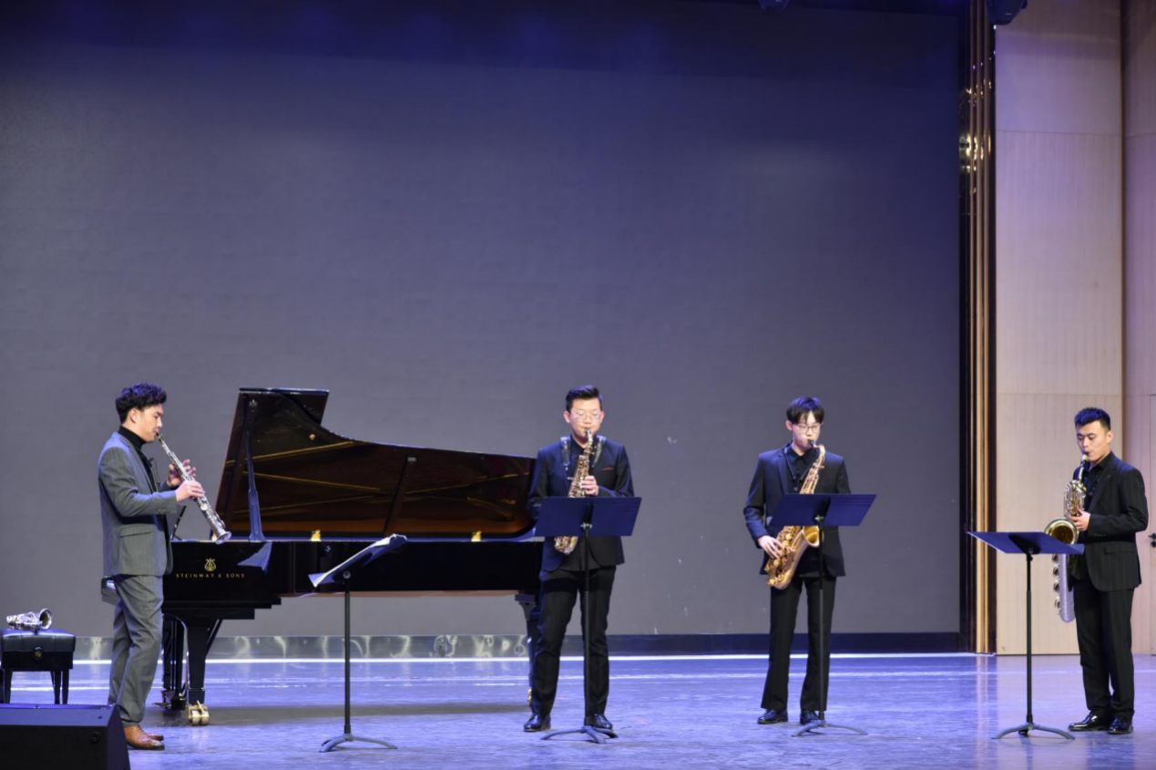 师学奇老师与员工共同演绎了萨克斯管四重奏,斯科特·乔普森的《天上赢家》出自于一首钢琴拉格泰姆作品。师生活泼可爱的表演展现出“天生赢家”的自豪感。