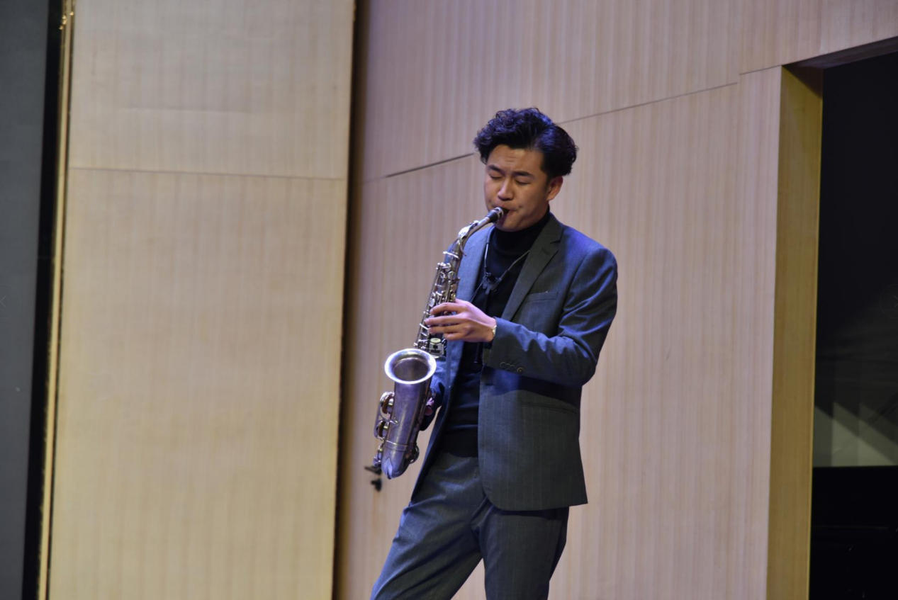 本次音乐会由两部分组成,主要以理论讲解与现场表演相结合的方式呈现。首先,师学奇老师详细介绍了萨克斯管的起源与发展,构造与种类,以及介绍在萨克斯管发展中的著名演奏家,并用视频、图片、实物等不同的形式向同学们展示了不同音域和类型的萨克斯管,让同学们更加深刻地了解了萨克斯管。其次,师学奇老师亲自演奏萨克斯管的各类曲目,通过独奏和四重奏的方式,让更多的同学感受到萨克斯管的魅力所在。