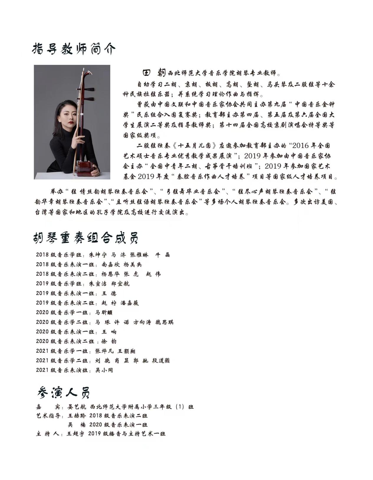 胡琴I:田朝 晏艺航 胡琴II:王德 王响