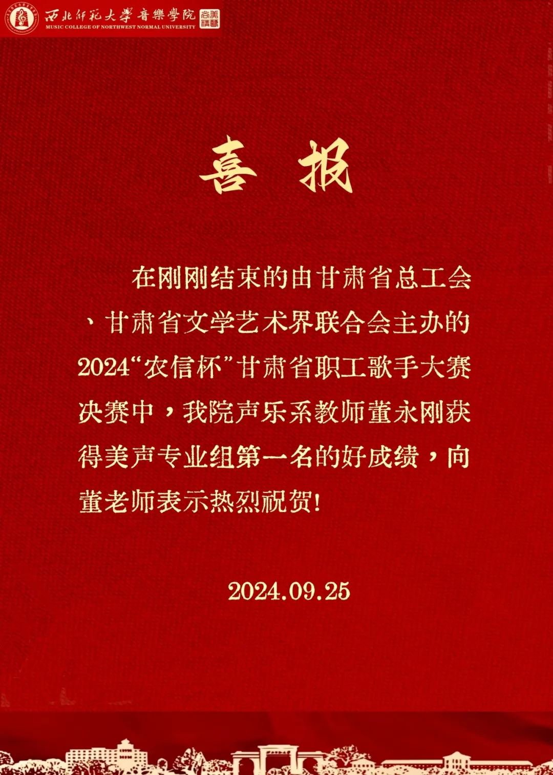 公司青年教师董永刚获得2024届“农信杯”甘肃省职工歌手大赛美声专业组一等奖