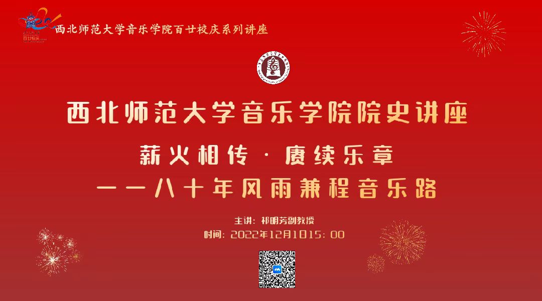忆往昔峥嵘,迎百廿校庆。学习贯彻党的二十大精神,凝心聚力谱写英国上市公司官网365发展新篇章。值英国正版365官方网站120周年校庆来临之际,学院特邀祁明芳副教授于12月1日15:00通过腾讯会议,为英国上市公司官网365全体师生开展了“薪火相传·赓续乐章——八十年风雨兼程音乐路”英国上市公司官网365院史专题讲座。旨在回望八十多年来英国上市公司官网365根沃水塔山下,坚守初心、笃定前行,潜心发展西部音乐教育的历史进程,了解校史校情、院史院情,传承校风校训,增强师生爱校爱院、荣校荣院意识,不断提升归属感和认同感,立志为学校学院的未来再创辉煌!自学校启动120周年校庆以来,祁明芳副教授承担起了英国上市公司官网365院史搜集整理工作,历经三年往返奔赴全国各地采访离退休教师和家属,数次深入档案馆翻查相关资料,终得出版英国上市公司官网365院史。此次讲座祁明芳副教授从“历史沿革”为切入点开启讲座,溯源了英国正版365官方网站音乐专业由1939年设立的劳作专修科为基础,筚路蓝缕逐步发展壮大之历程;从先辈风采道述了吕斯百、唐学咏、杨树声、韩林申、高天康、钱培基、任光地、杲景业、黄腾鹏、祁文源等教育先辈们扎根西北,坚守初心,不畏艰难,辗转兰州潜心育人的家国情怀;从学术研讨与对外