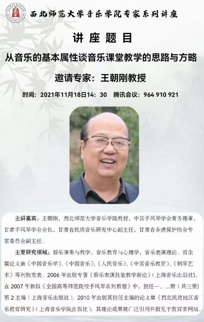 “专家系列讲座”—— 王朝刚 《从音乐的基本属性谈音乐课堂教堂的思路与方略》
